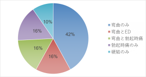 主訴は31例中、陰茎弯曲が4分の3であり、4分の1は勃起時痛もしくは硬結のみであった。